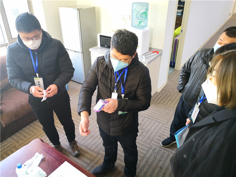 3月11日上午,大連分公司辦公所在的街道防疫工作領導小組督導檢查疫情防控工作。防疫工作領導小組一行人先后對分公司入戶區、辦公區、會議區等疫情防控工作區域,向大連分公司辦公室、后勤部有關負責和防疫人員詳細了解了定期、人員出入檢查、測溫、登記、隔離觀察場所準備等疫情防控工作落實情況。