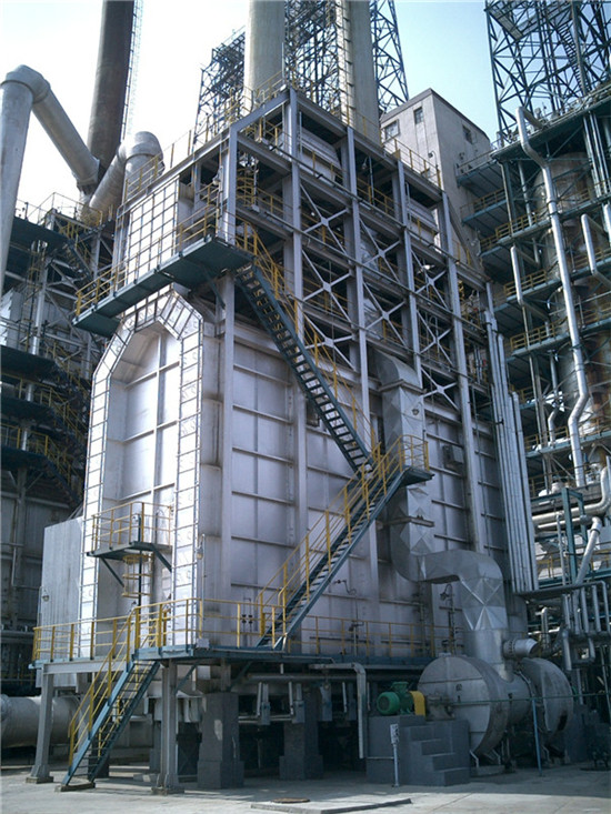 本爐設計時,為了解決本裝置自產低壓瓦斯燃燒問題設計采用了HKL-80燃燒器,有效的解決了低壓瓦斯的預混和燃燒問題。為了強化對流室爐管的外膜傳熱系數,減少爐管根數設計采用了R型鋸齒形翅片管。為了保證強制通風的需要,本爐設計時采用了備用風機,工作風機一旦出現問題備風機及蝶閥(執行機構)會自動投入運行,所以要求備用風機必須長年處于完好狀態。為了提高加熱爐的熱效率,減少爐體泄漏,全爐在結構上進行了全密封設計。為了提高加熱爐的熱效率、裝置能耗,在對流室頂部設置了兩臺蒸發液式傳熱管預熱器,它具有傳熱效率高、使用年限長的特點。為了提高加熱爐熱效率,減少預熱器低熱腐蝕的機會,使其加熱爐的排煙溫度常年保持在160℃左右,設計采用了本公司的專利技術調風閥,如果加熱爐低負荷或冬季由于外界空氣溫度低,使預熱器的排煙溫度低于155℃時,可適當開啟風道下部的調風閥,使其排煙溫度常年保持在155℃以上,以確保預熱器不會造成低熱腐蝕。
